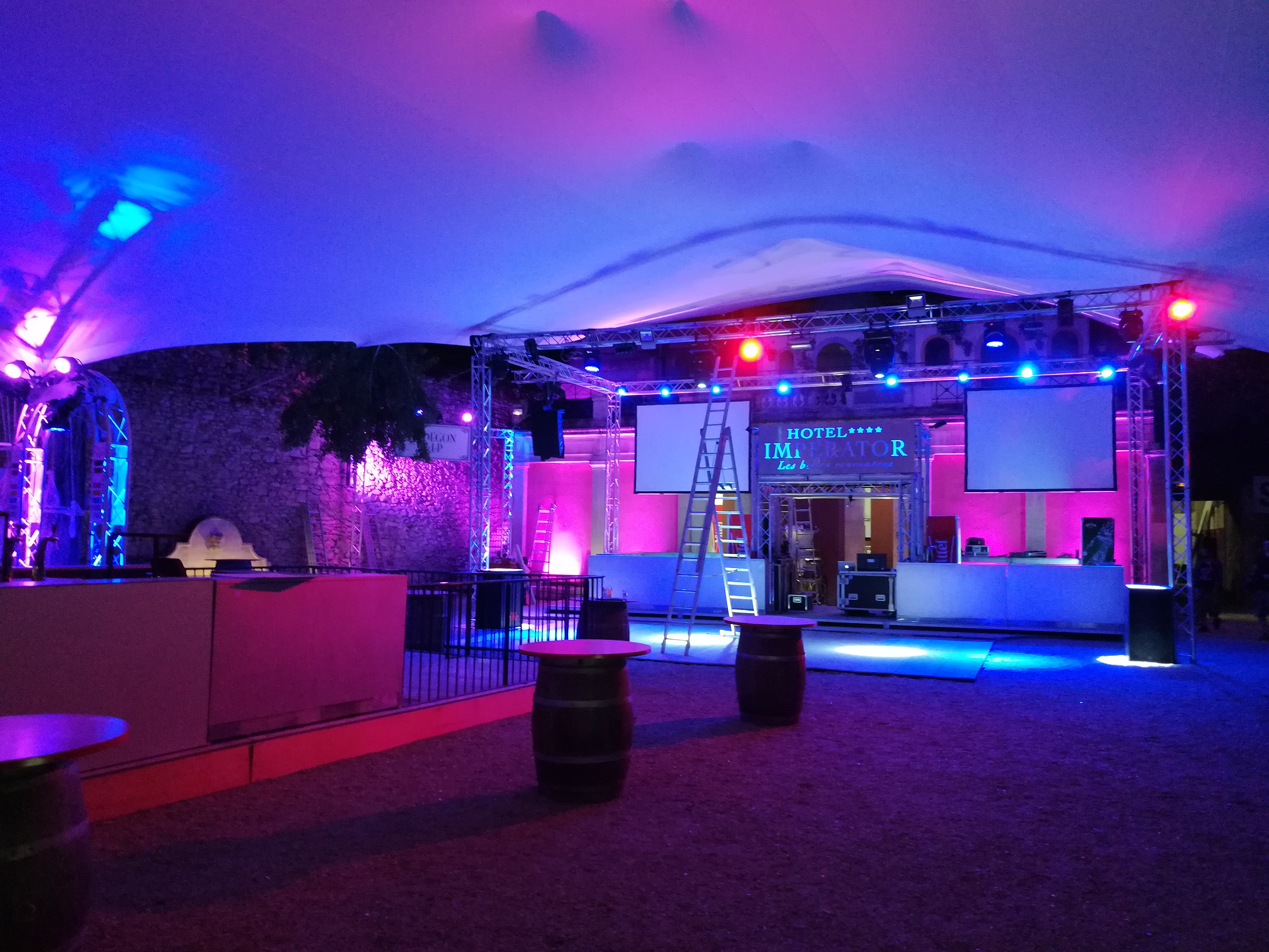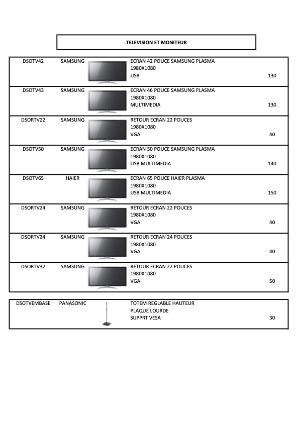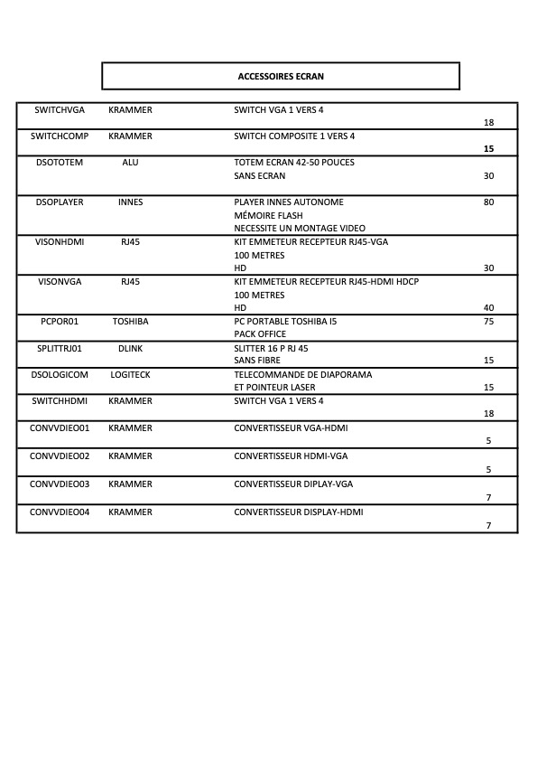 écrans plasma, vidéoprojecteurs, systèmes de visite guidée, matériels d’éclairage scénique, matériel de sonorisation,